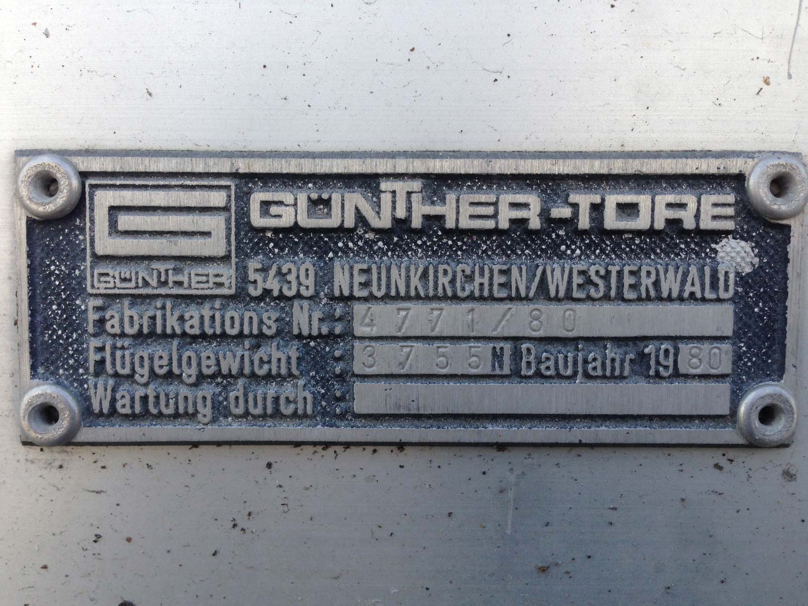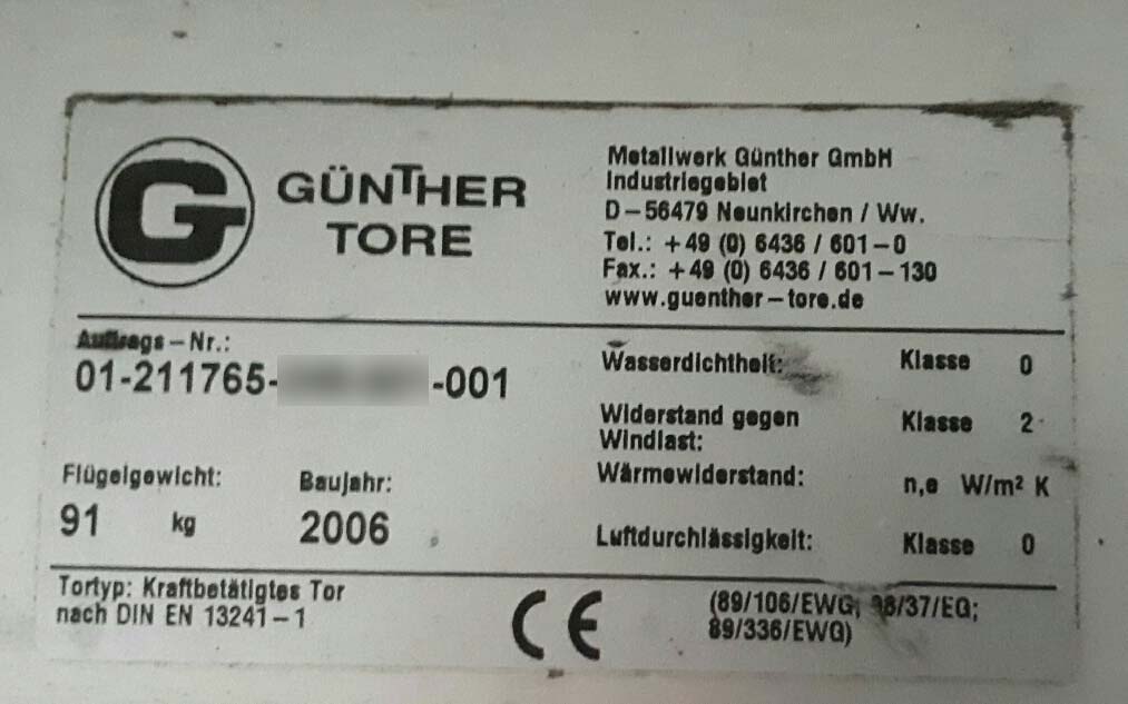Antwort: bis ca. 2002 war das Typenschild gestanzt von außen mittig auf dem Tor zu sehen. Ab ca. 2002 wurden Aufkleber von innen rechts auf der zweiten/dritten Sektion montiert.